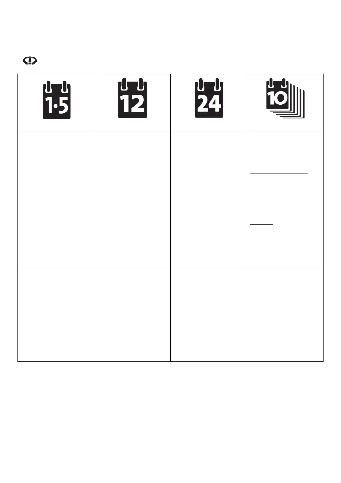 Note: Service intervals are based on an average operation of 8 lifts per day, 5 days per week, 50 weeks per