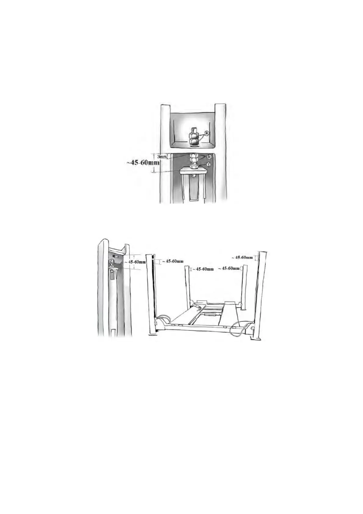 15. Set up the posts, maintaining the space of approx. 45-60mm between the fixing plate of the top of the