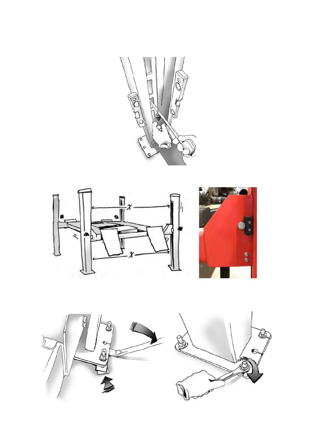 Adjust vertically and level the 4 posts and then tighten the anchor nuts. Raise the platform to the first