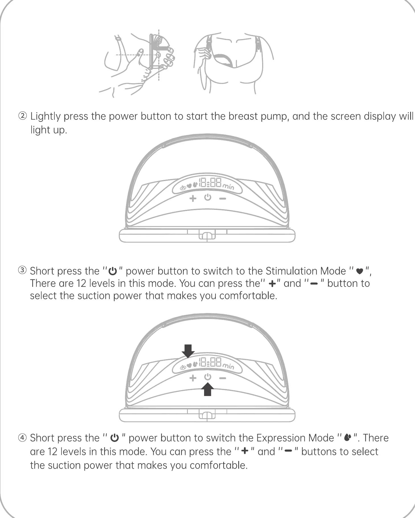 @ Lightly press the power button to start the breast pump, and the screen display wil