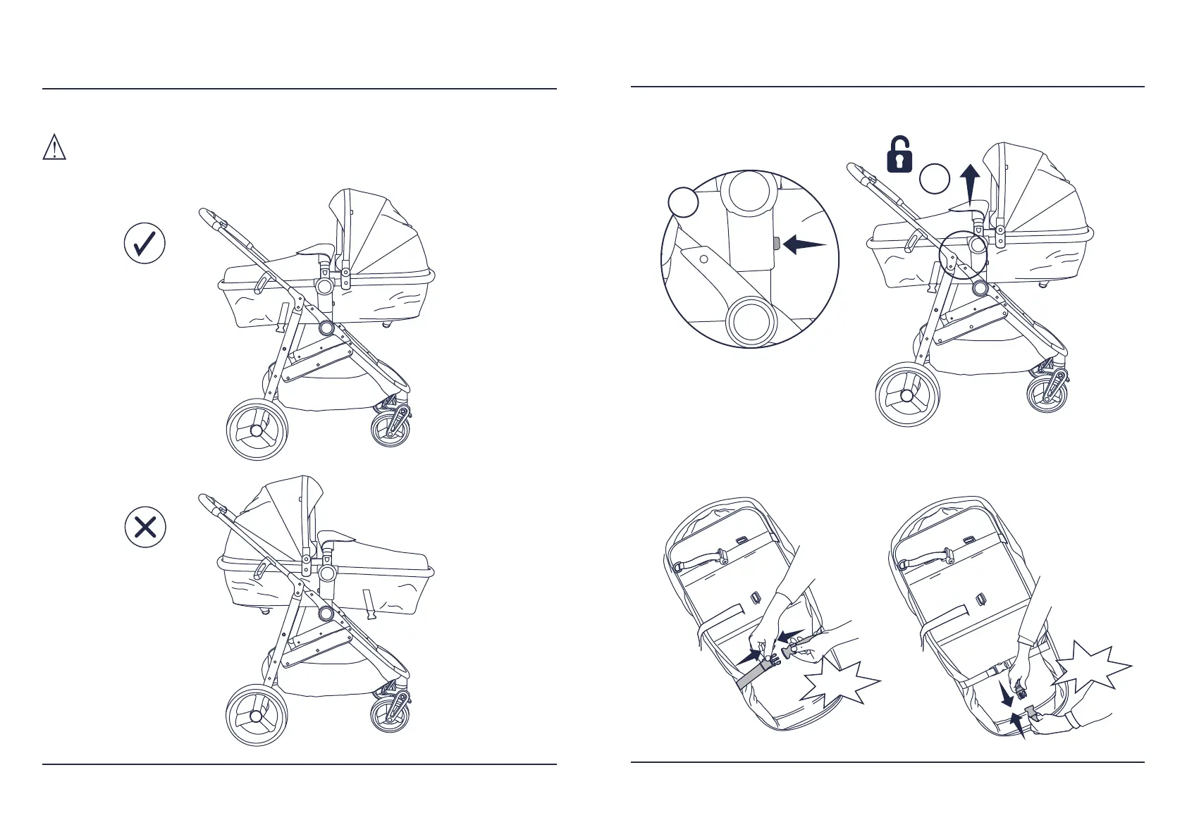 Listen for the “click” to signal buckles are secure.