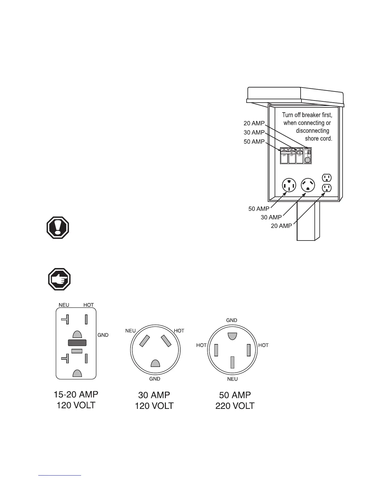 The power requirement for the motorhome is 50 AMP 120/240 Volt AC