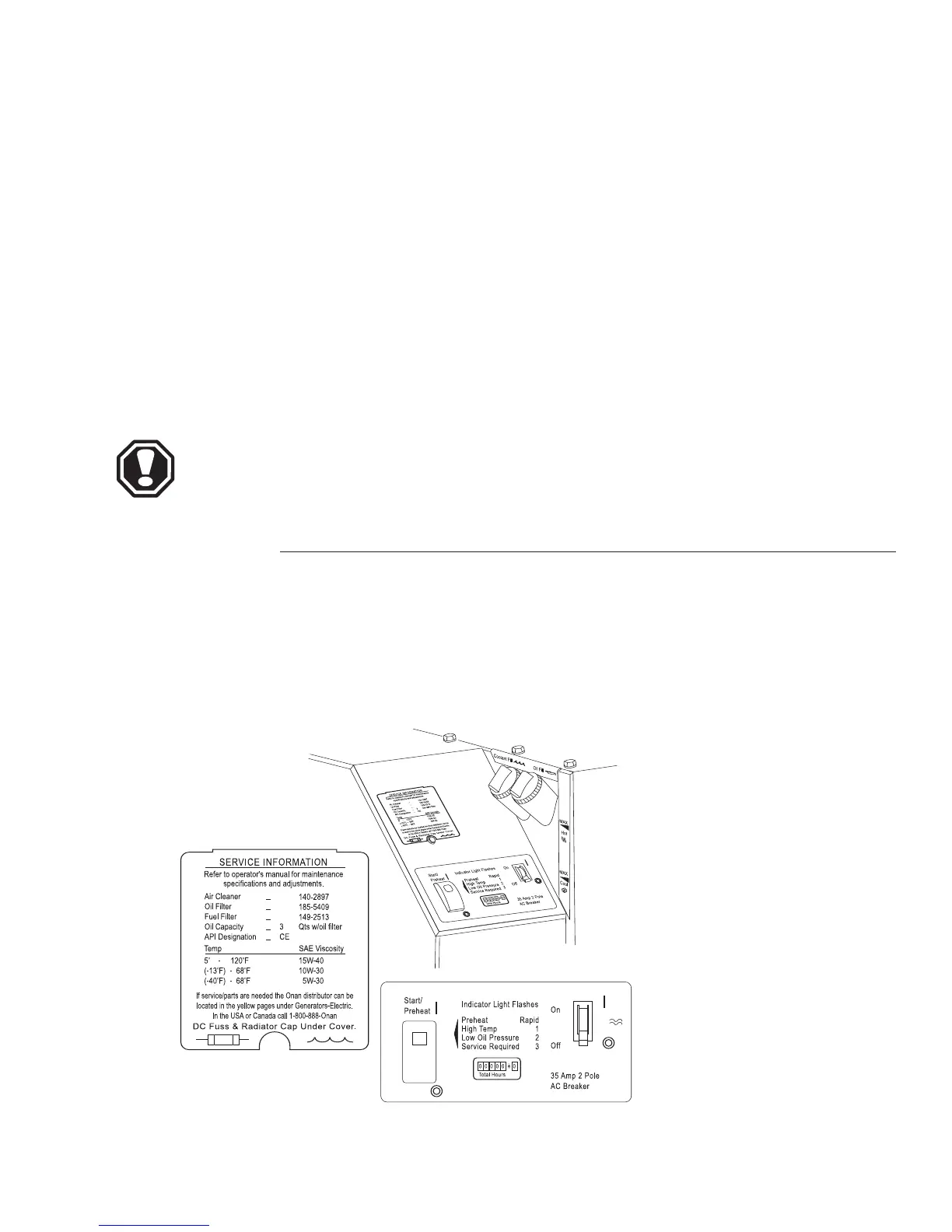 • The generator control panel, located on the generator.