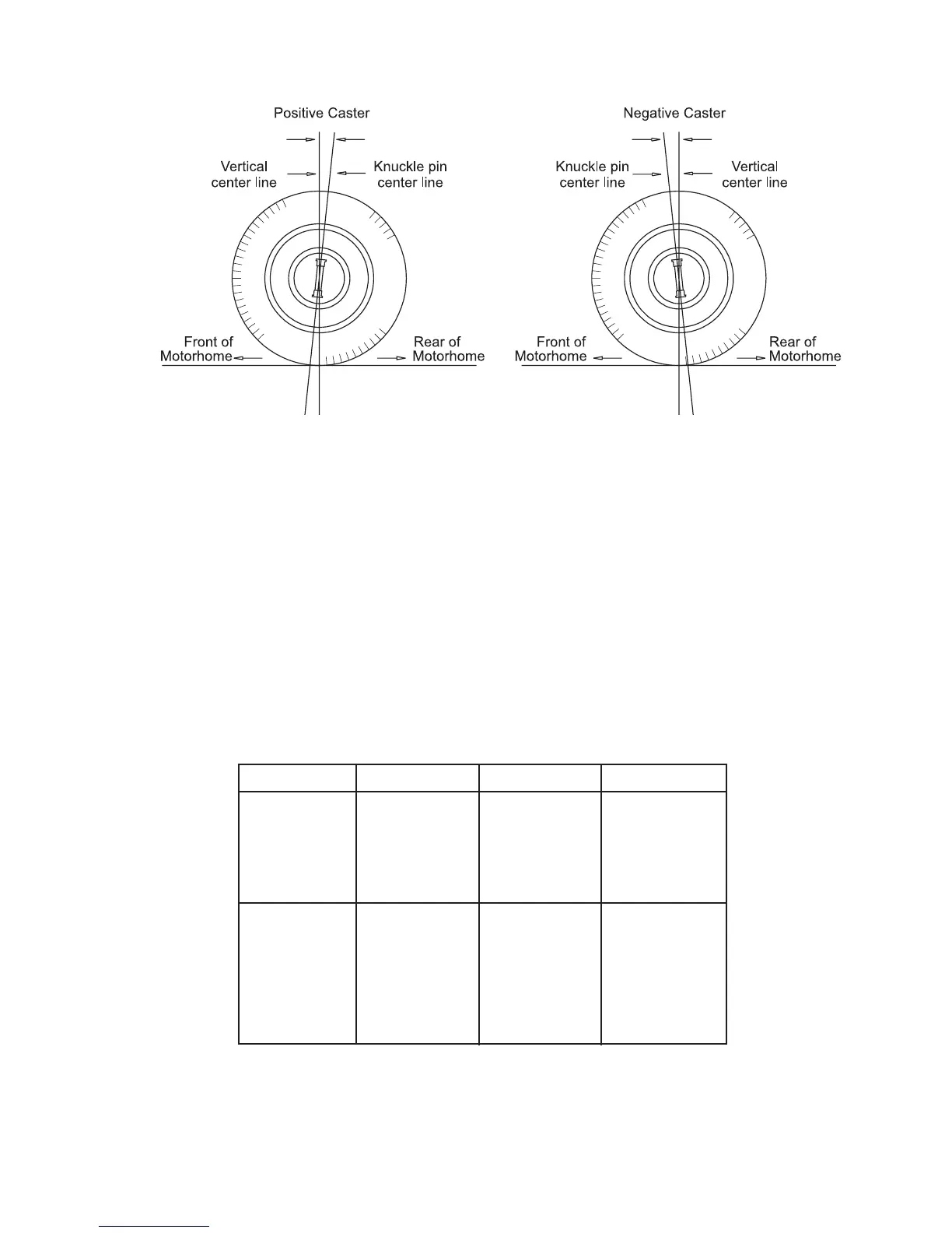 Caster is the fore and aft tilt (toward the front or rear of the motorhome)