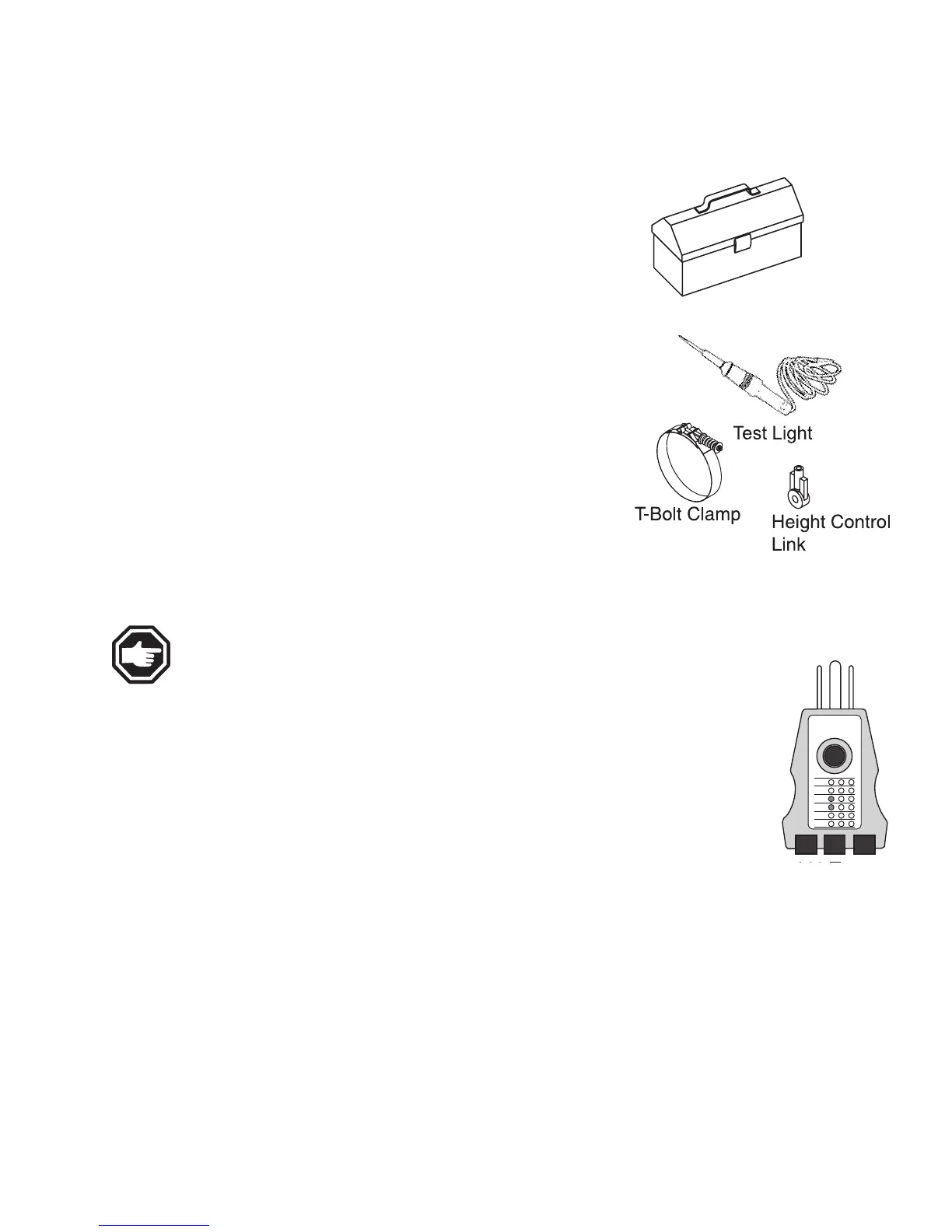 • 12 Volt DC test light and a 110 AC Polarity Tester. These may