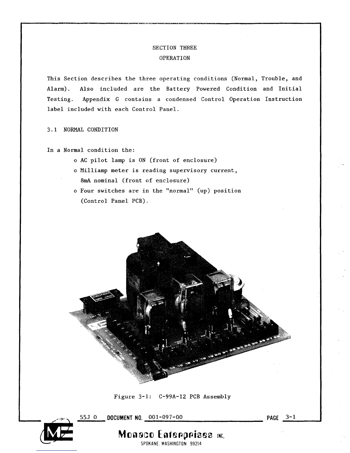 This Section describes the three operating conditions (Normal, Trouble, and