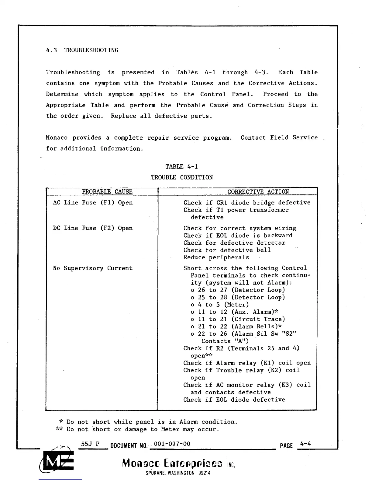 Troubleshooting is presented in Tables 4-1 through 4-3. Each Table