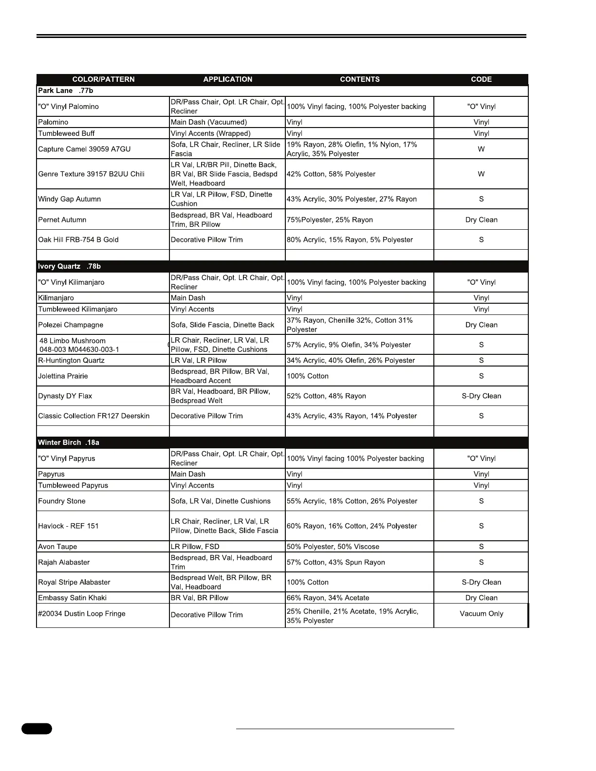 Monaco Cayman 2005 - Fabric Specification Charts