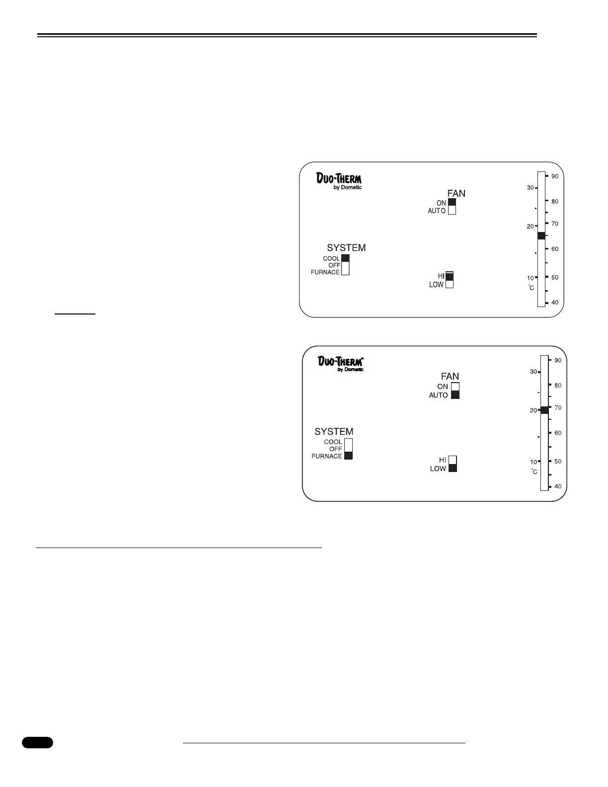thermostat requires 12 Volts DC to operate. The thermostat operates the roof air conditioner functions