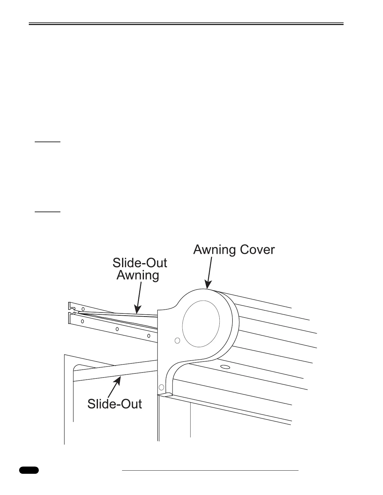 direction. A fixed edge of the slide-out cover is installed into an awning rail, mounted just above the
