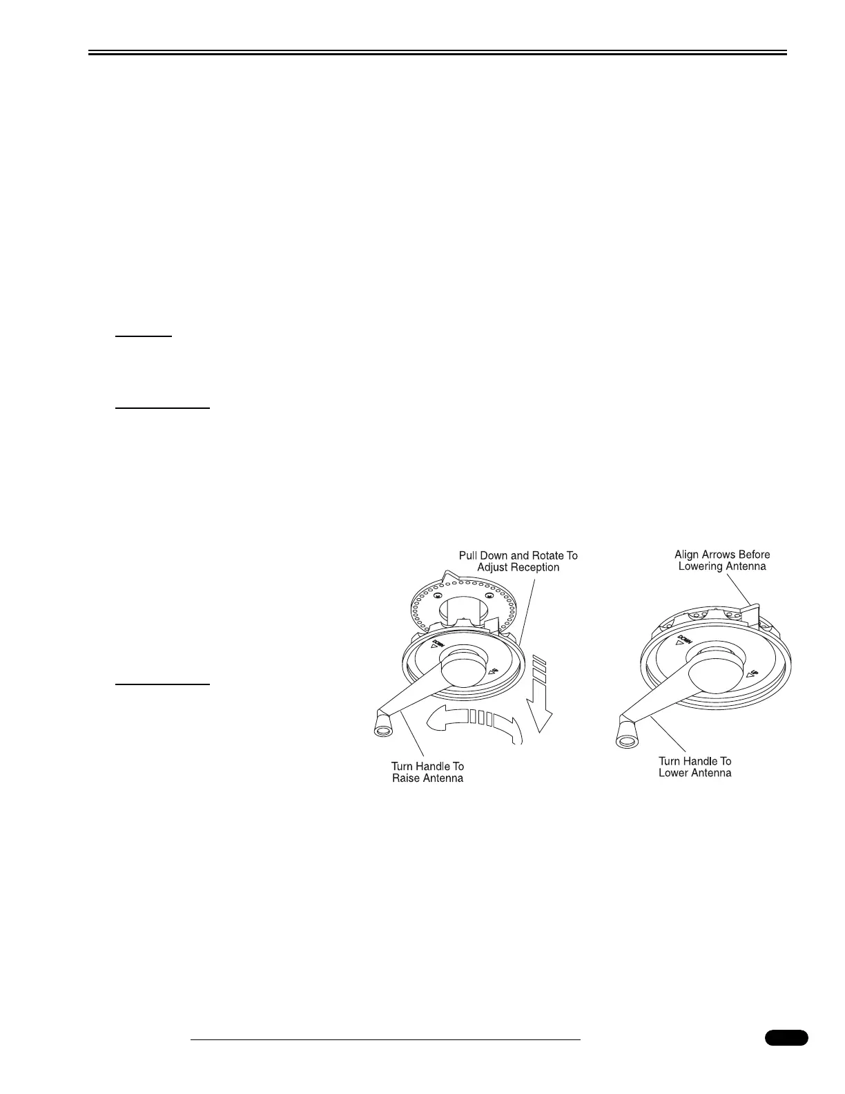• Rotate the crank handle counterclockwise to lower the antenna fully into the cradle. Make an