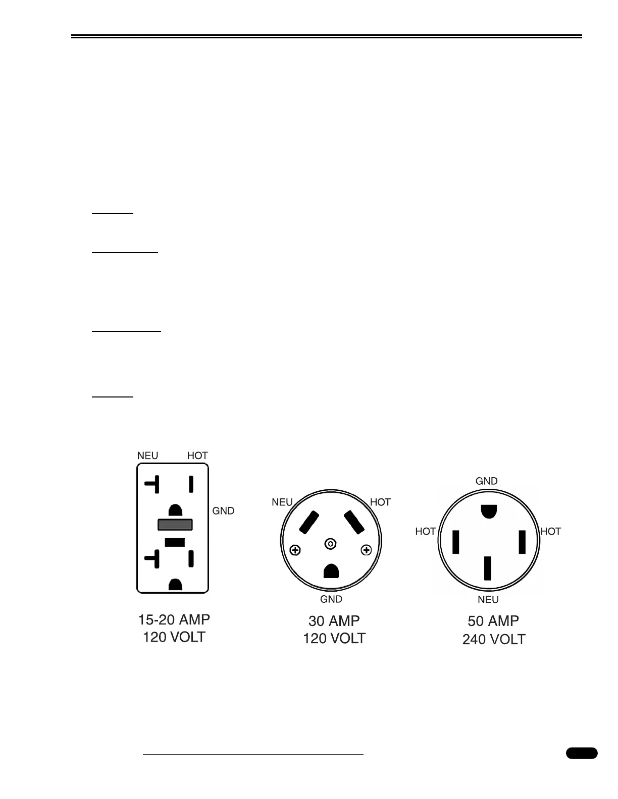 Three types of shore power outlets most commonly used are shown in the illustration.
