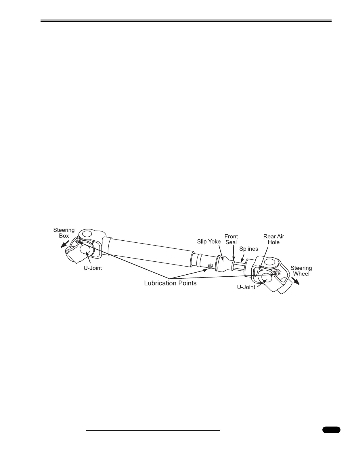 shaft universal joints and slip yoke every 30,000 miles or annually. Remove the steering column cover to