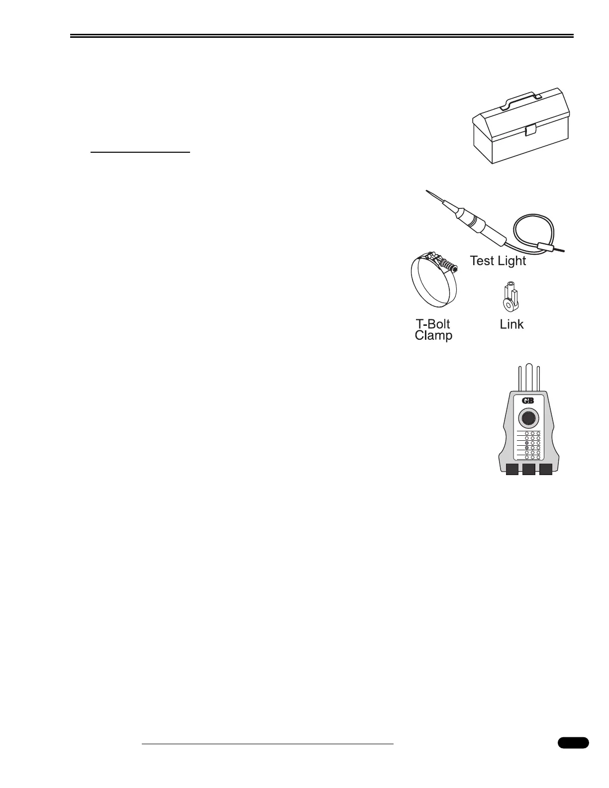 • 12 Volt DC test light and a 120 AC Polarity Tester. (These