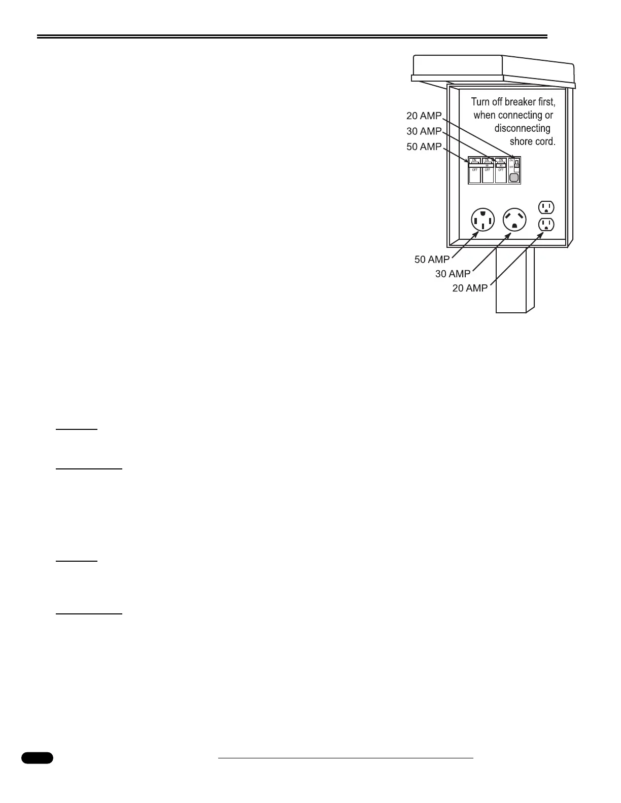 • Prepare the shore cord for connection. Uncoil and inspect the cord,