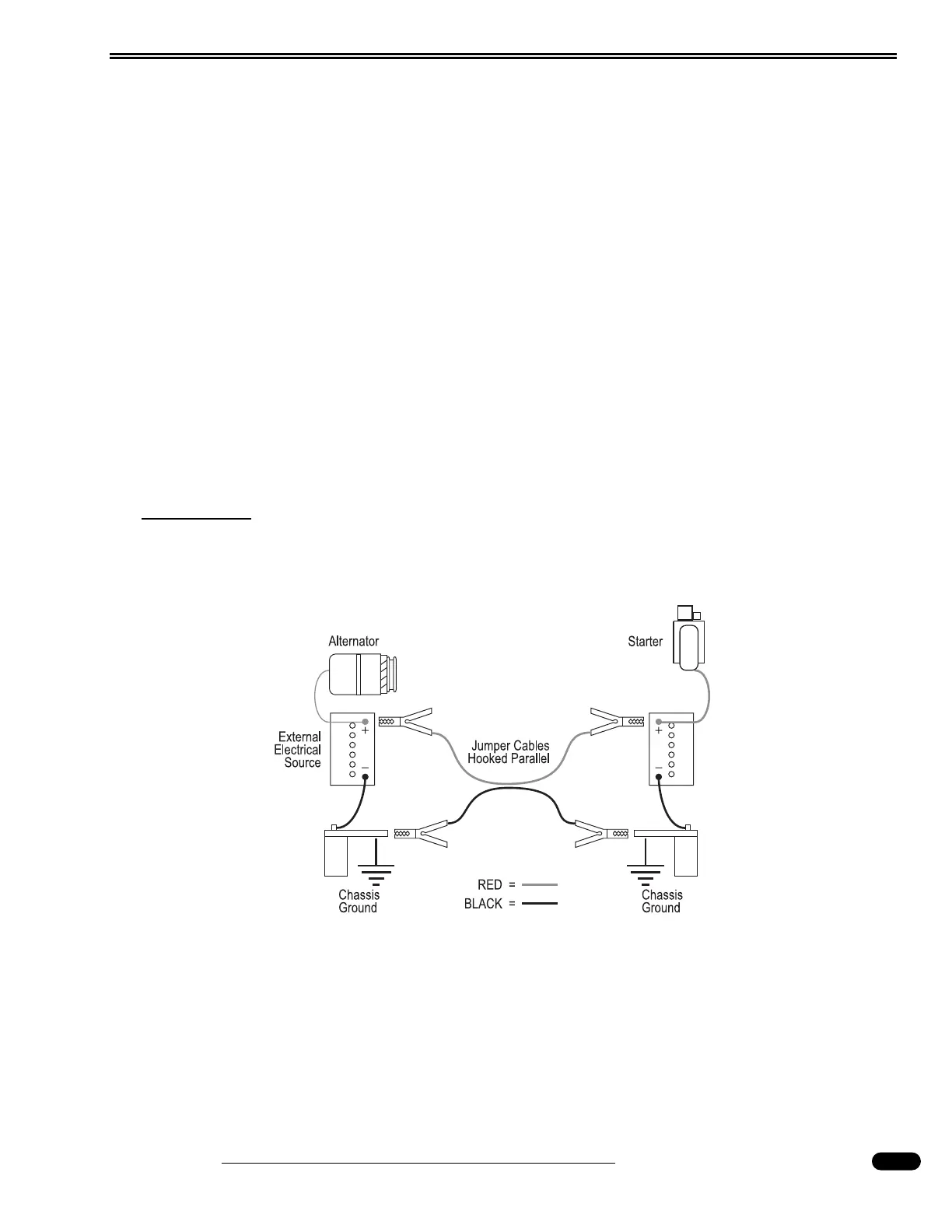 the chassis battery. When using jumper cables to start the engine, the cables must connect