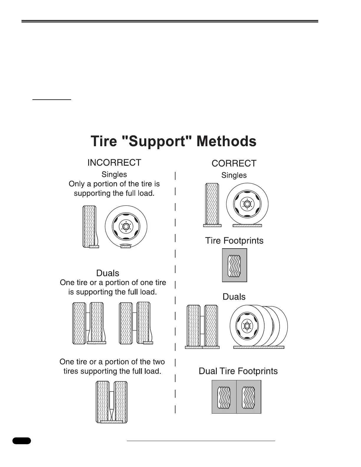 under the tires. The load on the tire should be evenly distributed on the support block. In the case of dual