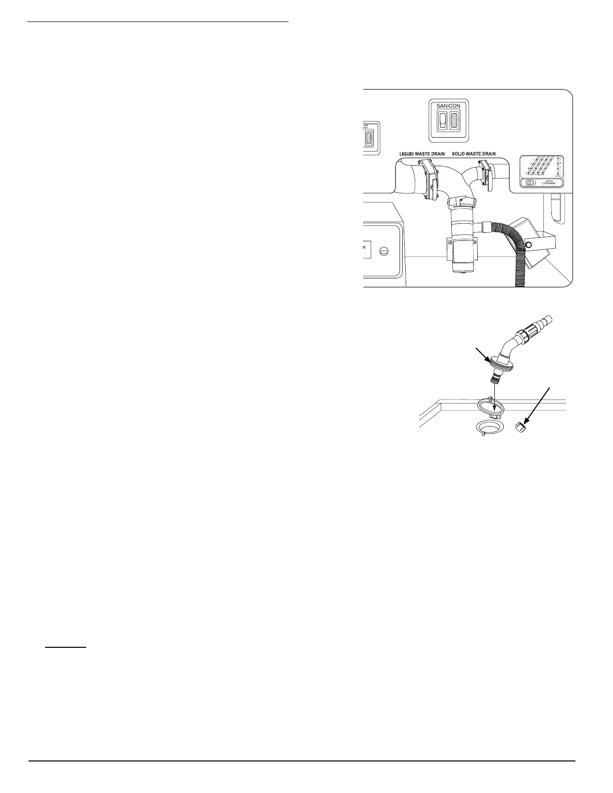 shore connection. Remove sewer pipe adapter from shore fi tting and install drip cap. Coil and store hose in