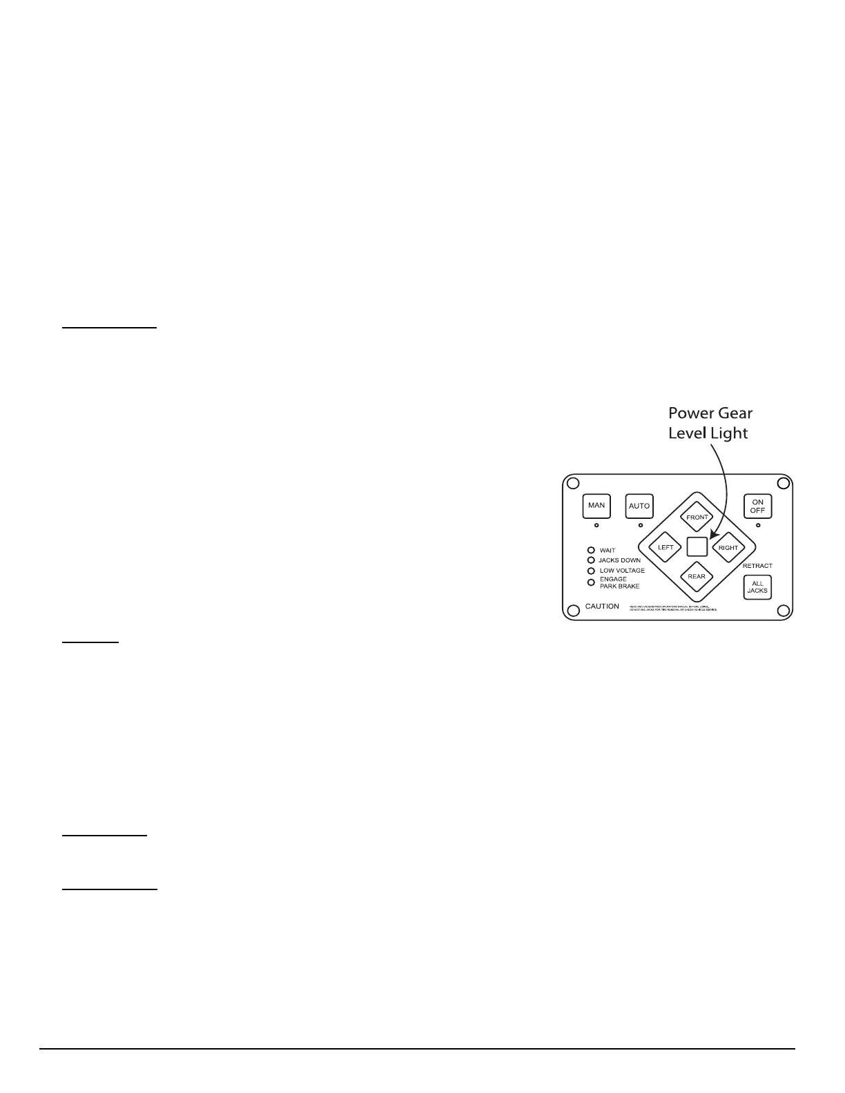 until it illuminates. Push the appropriate jack button to adjust motorhome to preference.