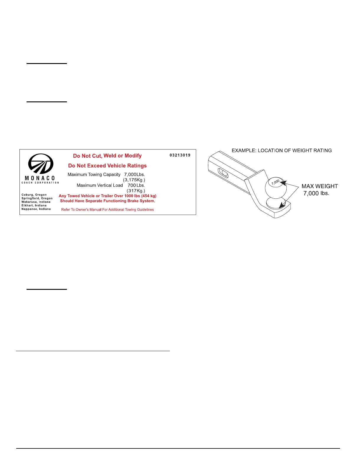 DO NOT tow a trailer or vehicle that exceeds the rated capacity of the hitch receiver.