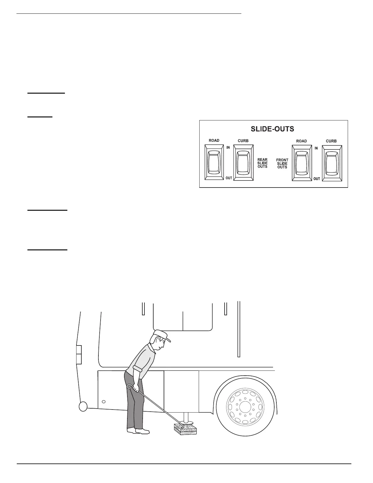 chock at the opposite set of rear wheels to prevent the motorhome from rolling.