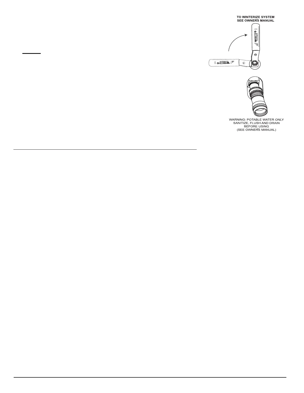 • Fill the hot water tank before topping off the fresh water supply. Confi rm waste holding tanks are empty.