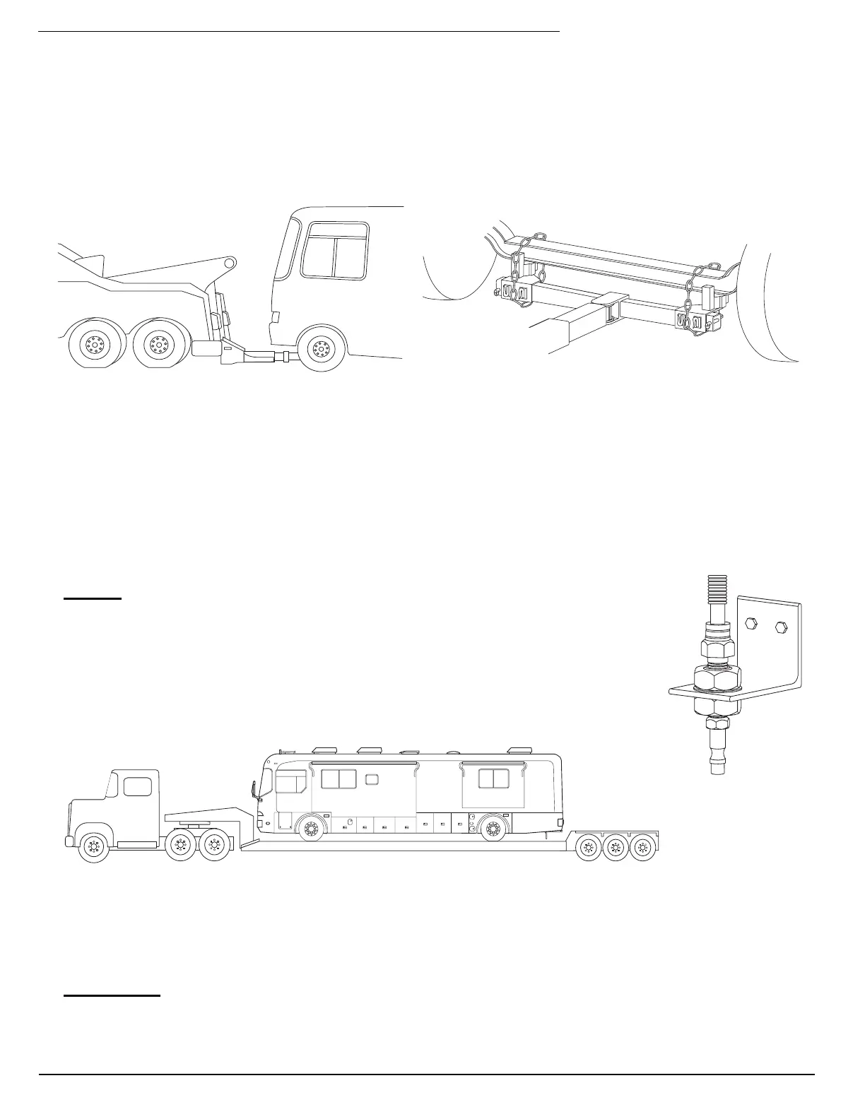 • Never allow anyone to go under a motorhome while it is being lifted by towing equipment unless the