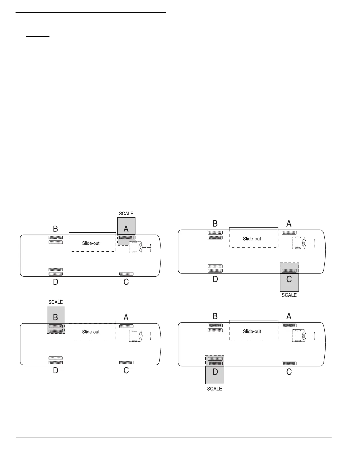 The motorhome must be weighed fully loaded to obtain accurate scale readings and to determine the proper