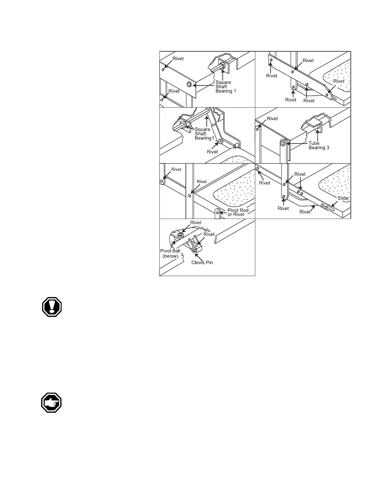 Lubricate all moving parts (bearings, pivot points, slides, clevis pin, and the
