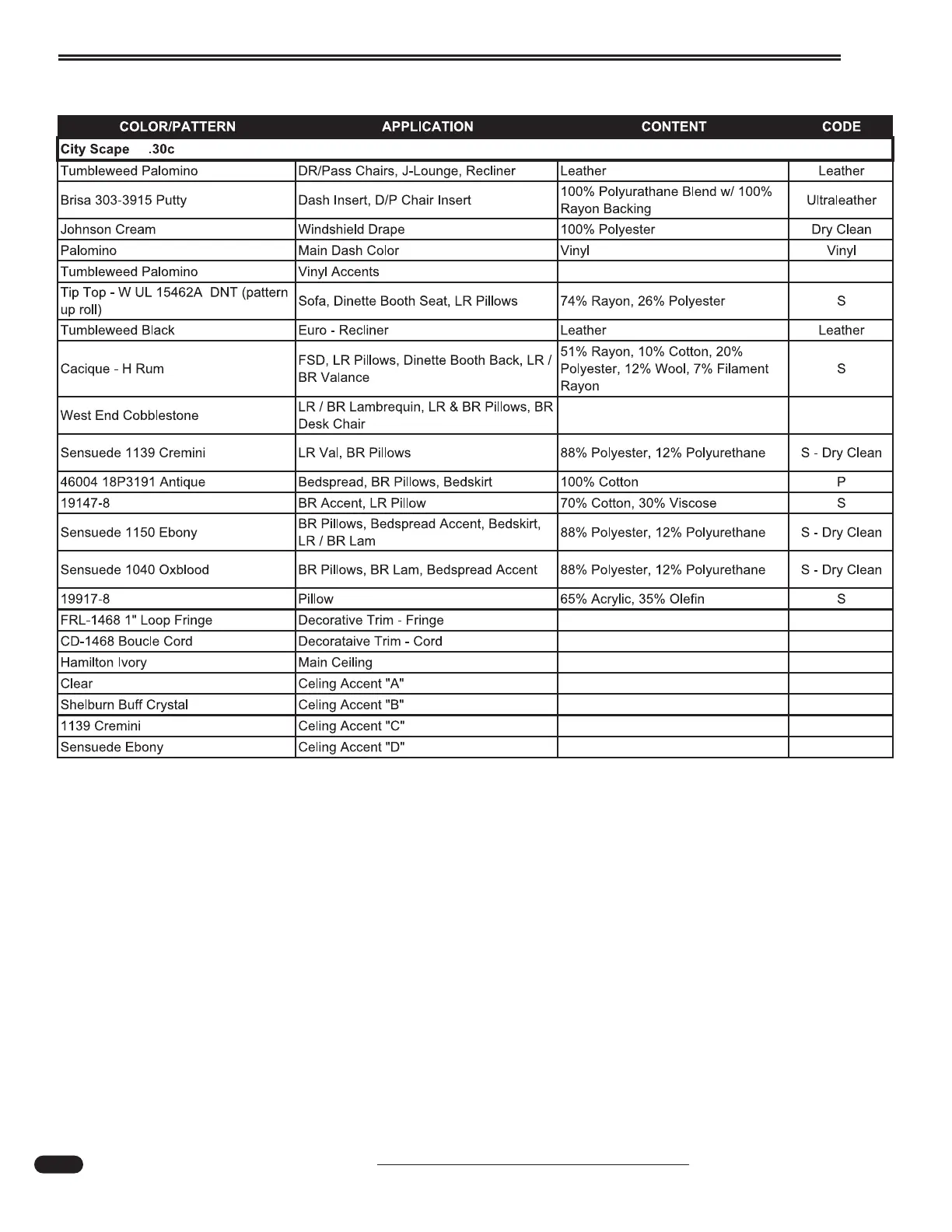 Monaco Executive 2005 - Fabric Specifications Charts