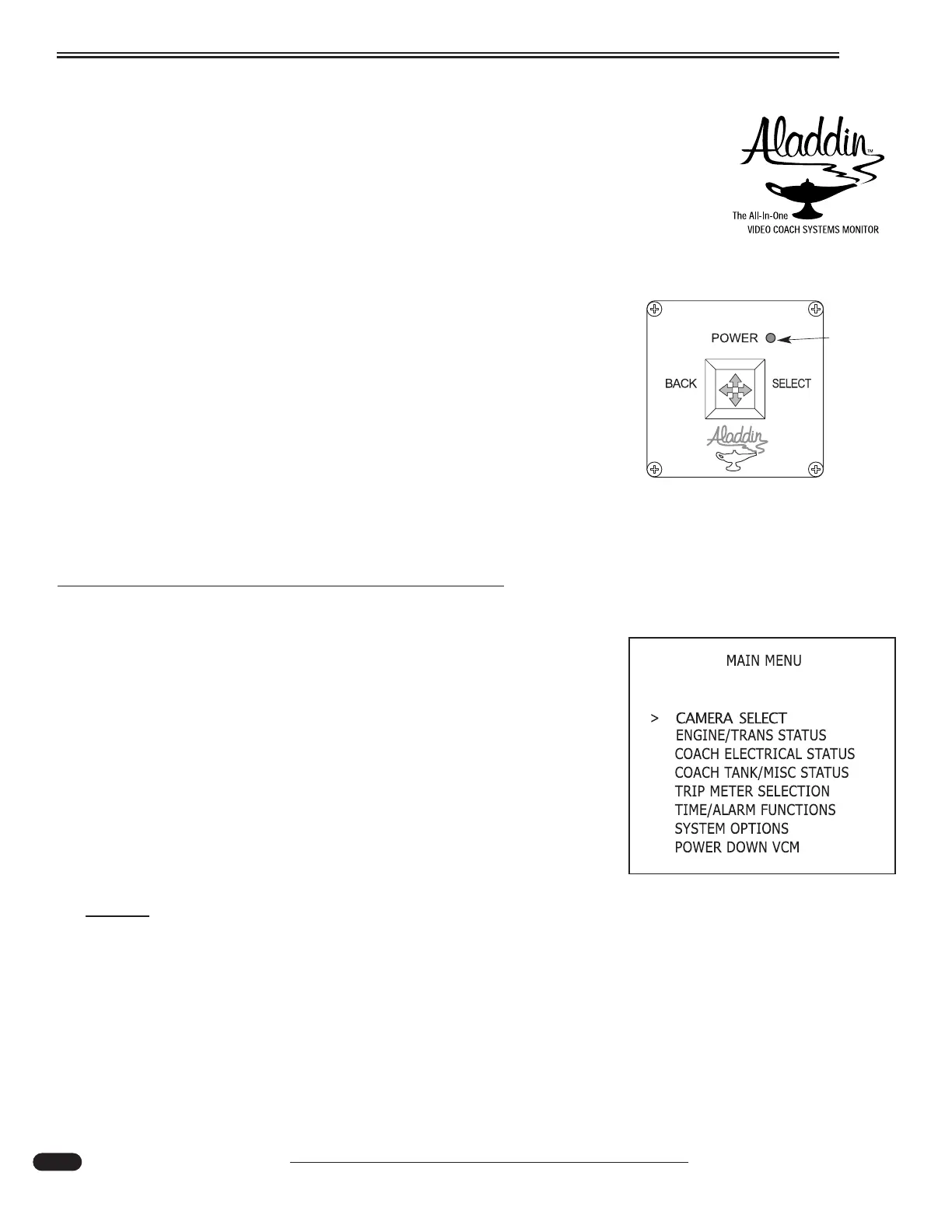 Interior house power must be ON for the Aladdin™ screen to be displayed.