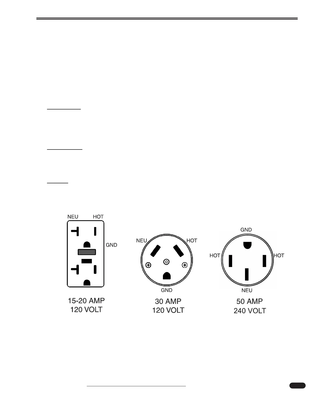 Three types of shore power outlets most commonly used are shown in the illustration.