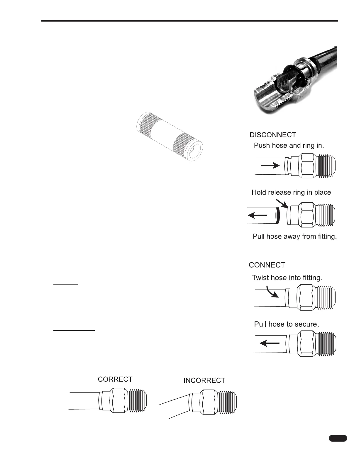 • While holding the release ring down, pull hose away from fitting.