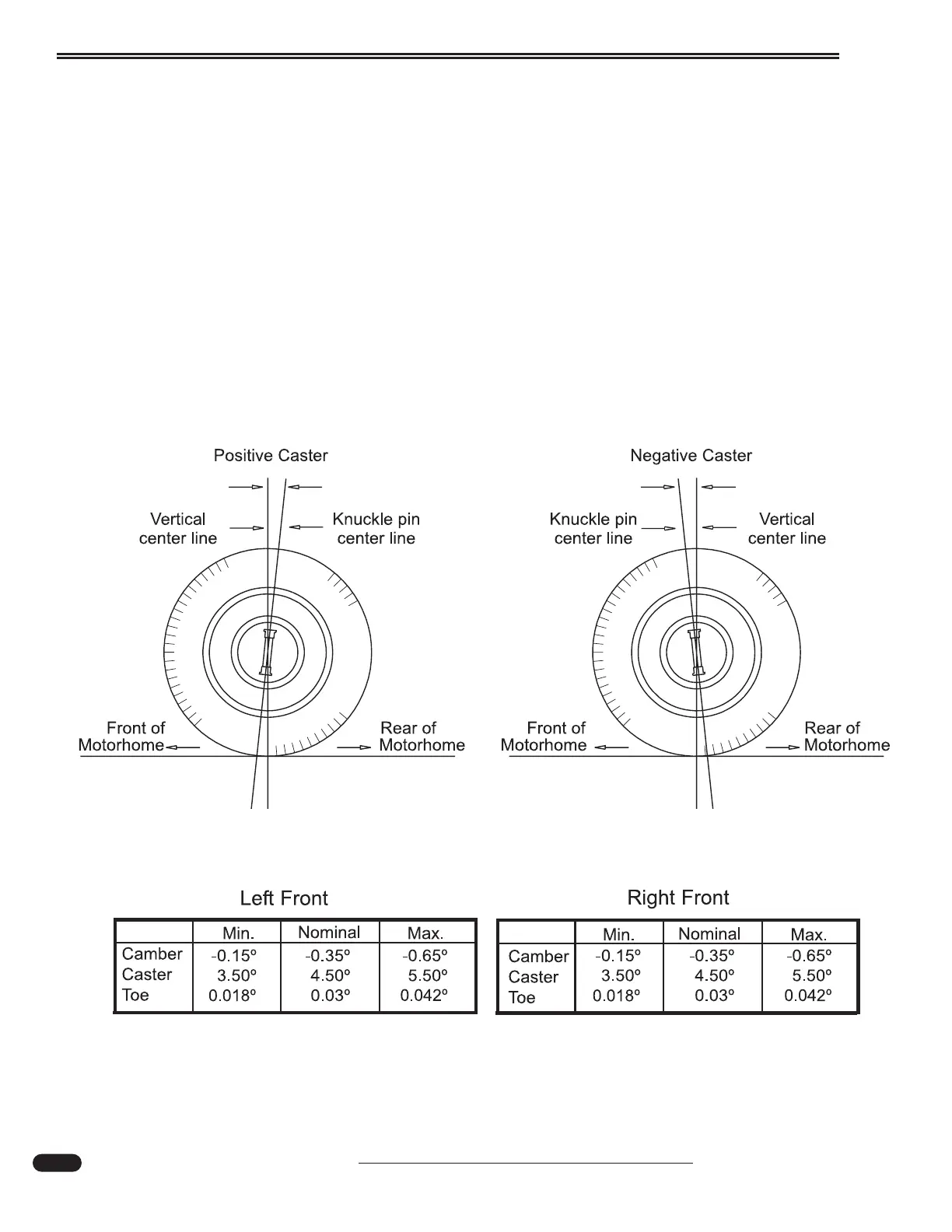 “Negative” caster is the tilt of the top end of the kingpin toward the front of the motorhome.