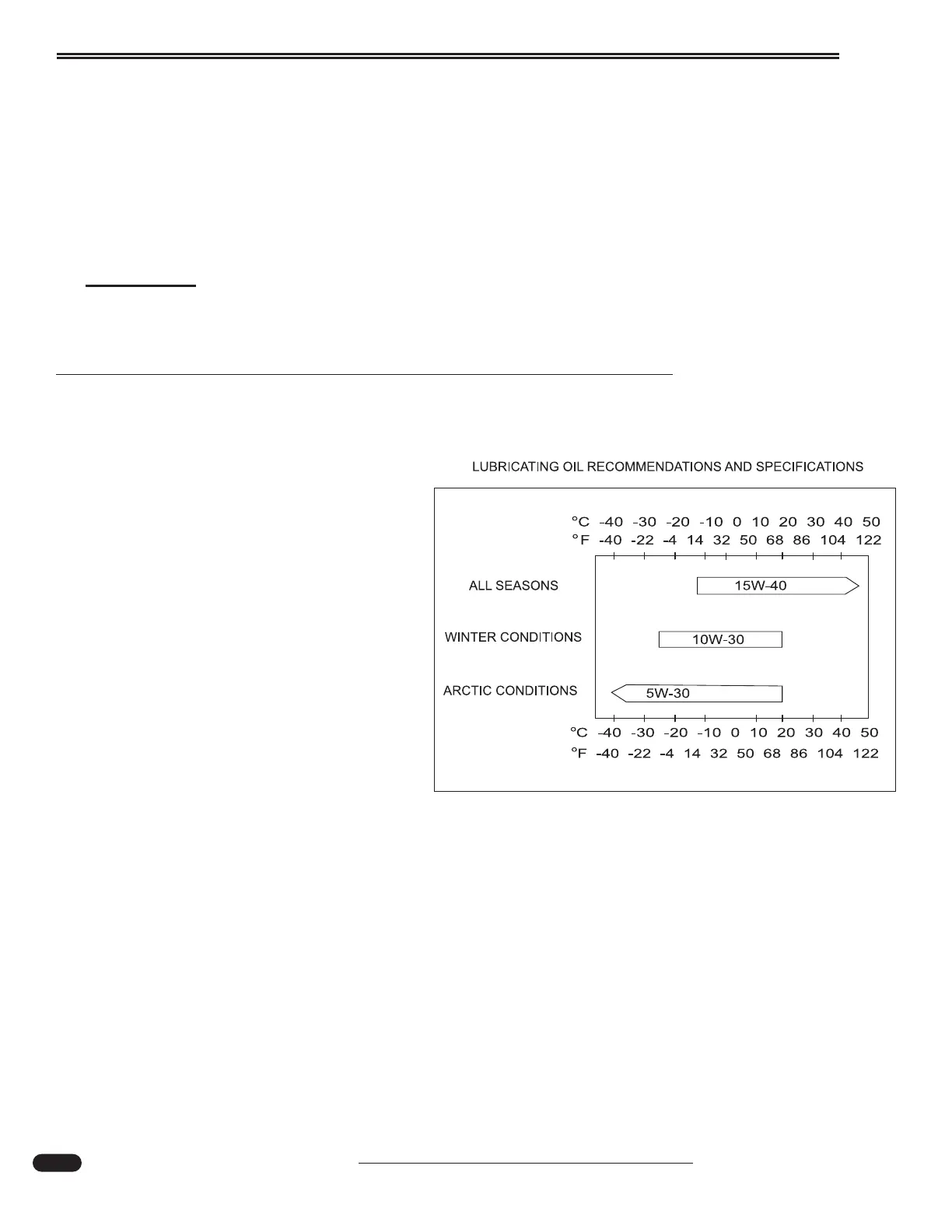 shut down, will aid in starting. The use of synthetic oils should not be used to extend drain intervals.