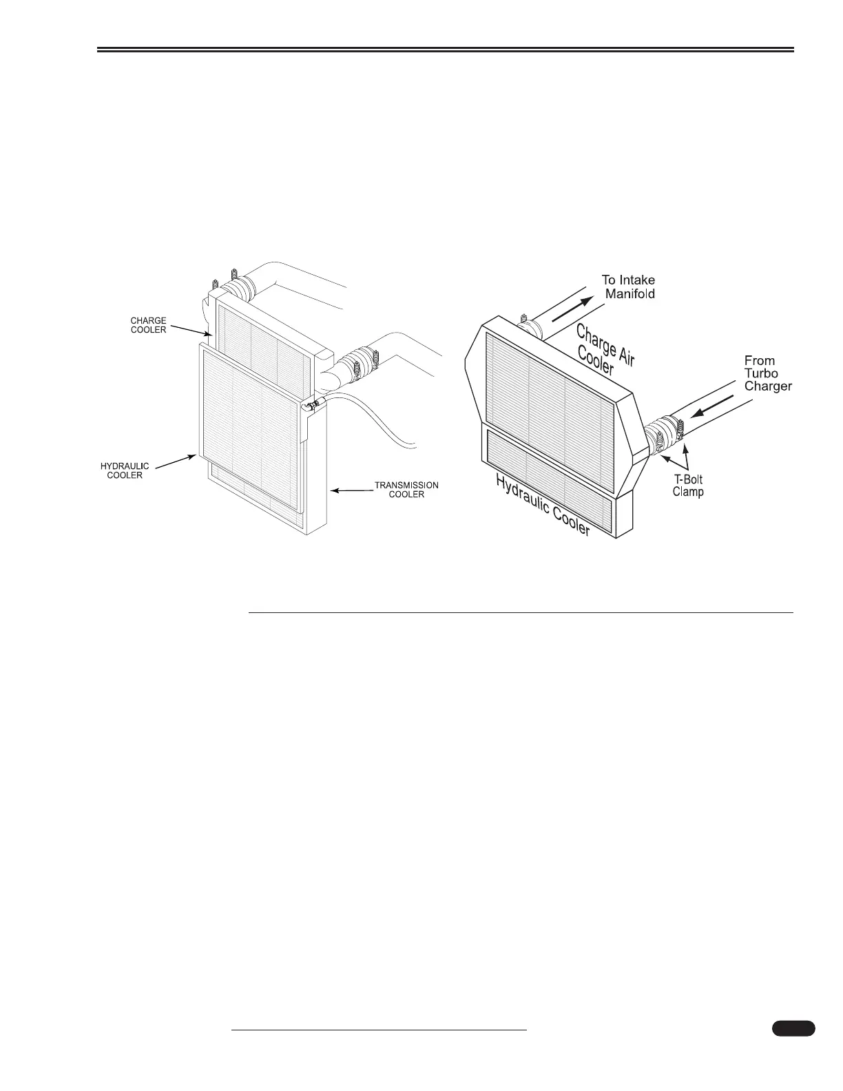 During each oil change inspect the engine side of the radiator/CAC assembly for foreign objects