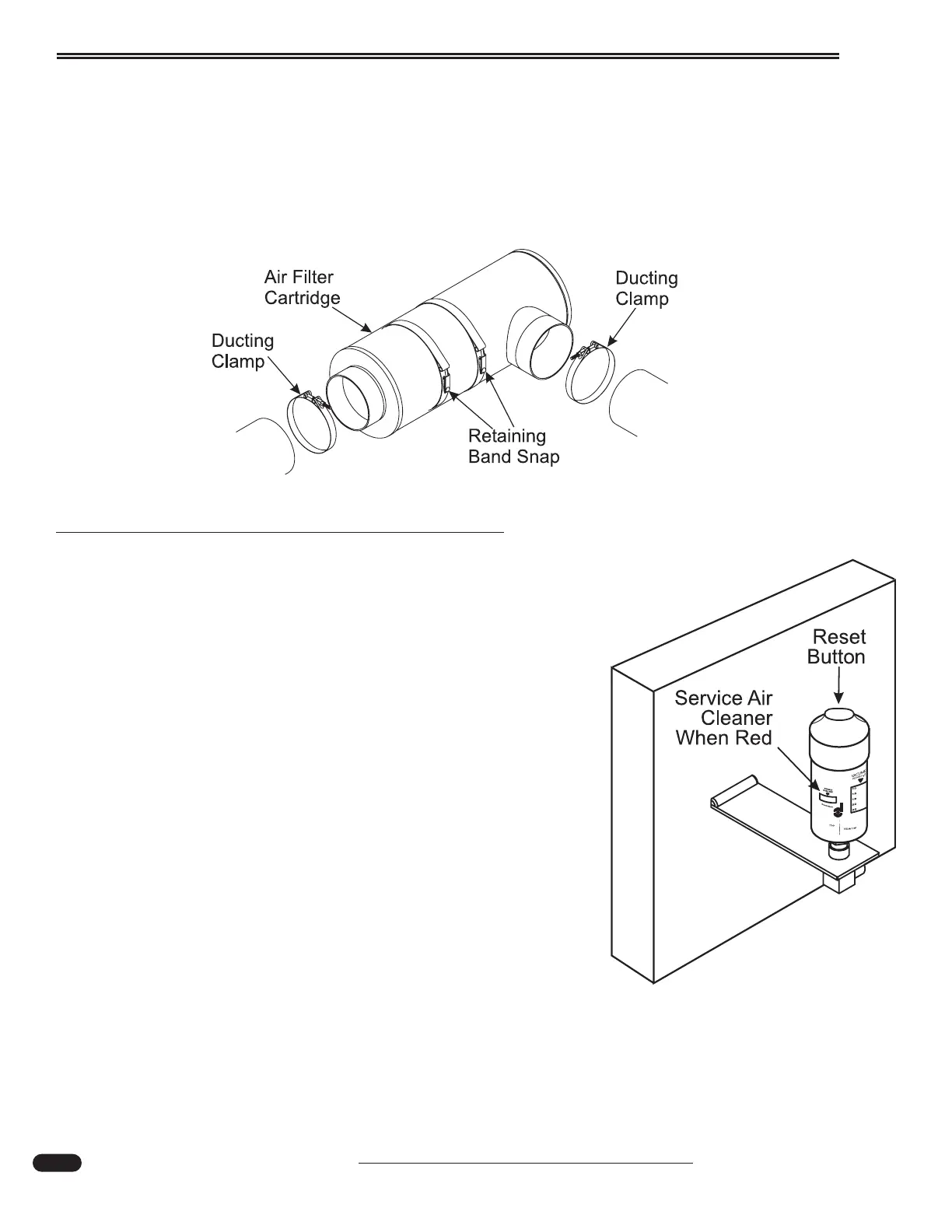 The entire air filter cartridge is discarded and replaced by loosening the inlet and outlet ducting