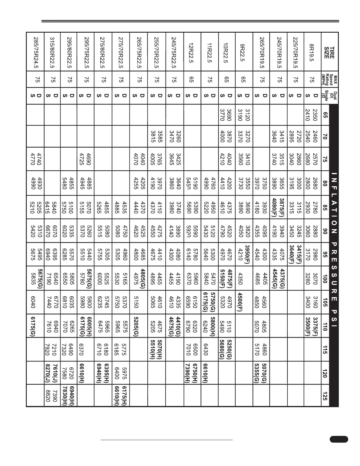 disclosed by the chart. Monaco is not responsible for the accuracy of the information disclosed or for any errors within the Tire Inflation Chart.