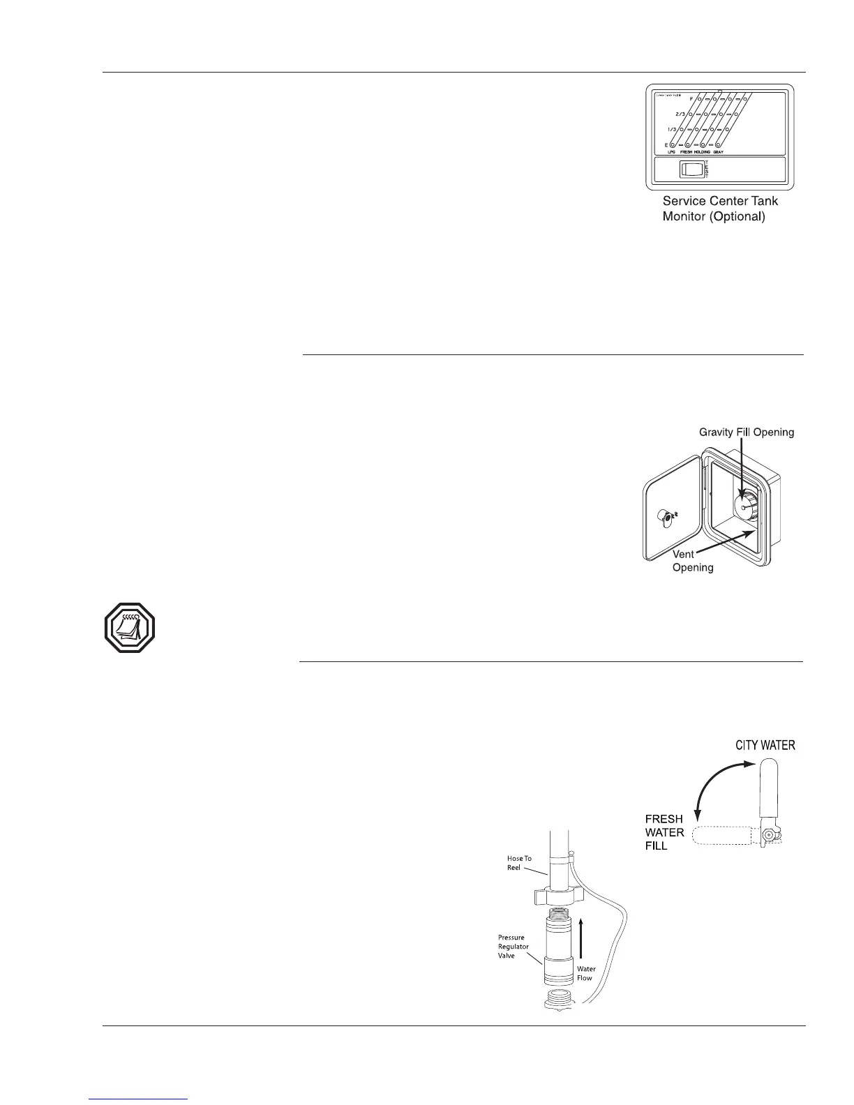 container into the fresh water tank. The gravity fill inlet can be used to pour