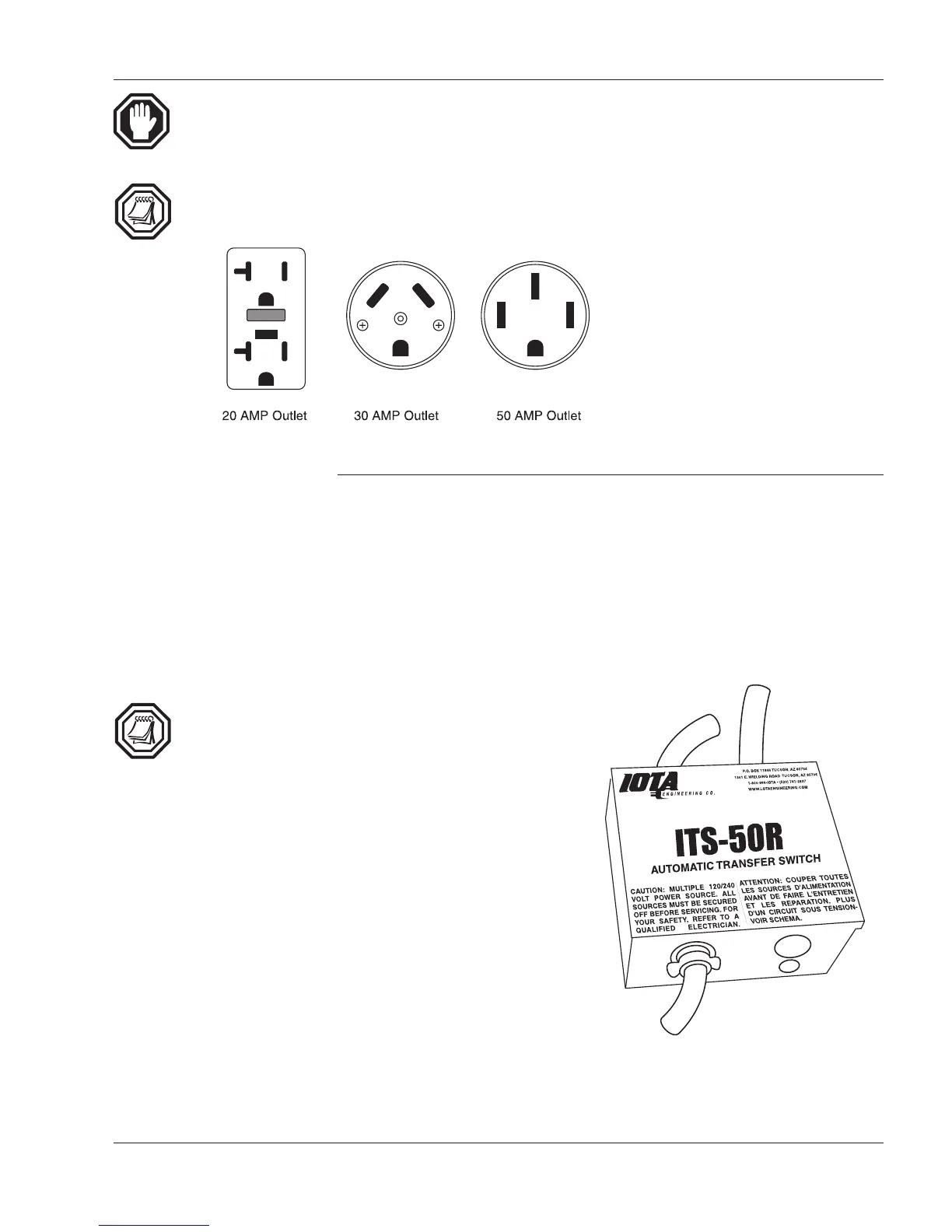 power cord or generator through the transfer switch to the 110/220 Volt AC