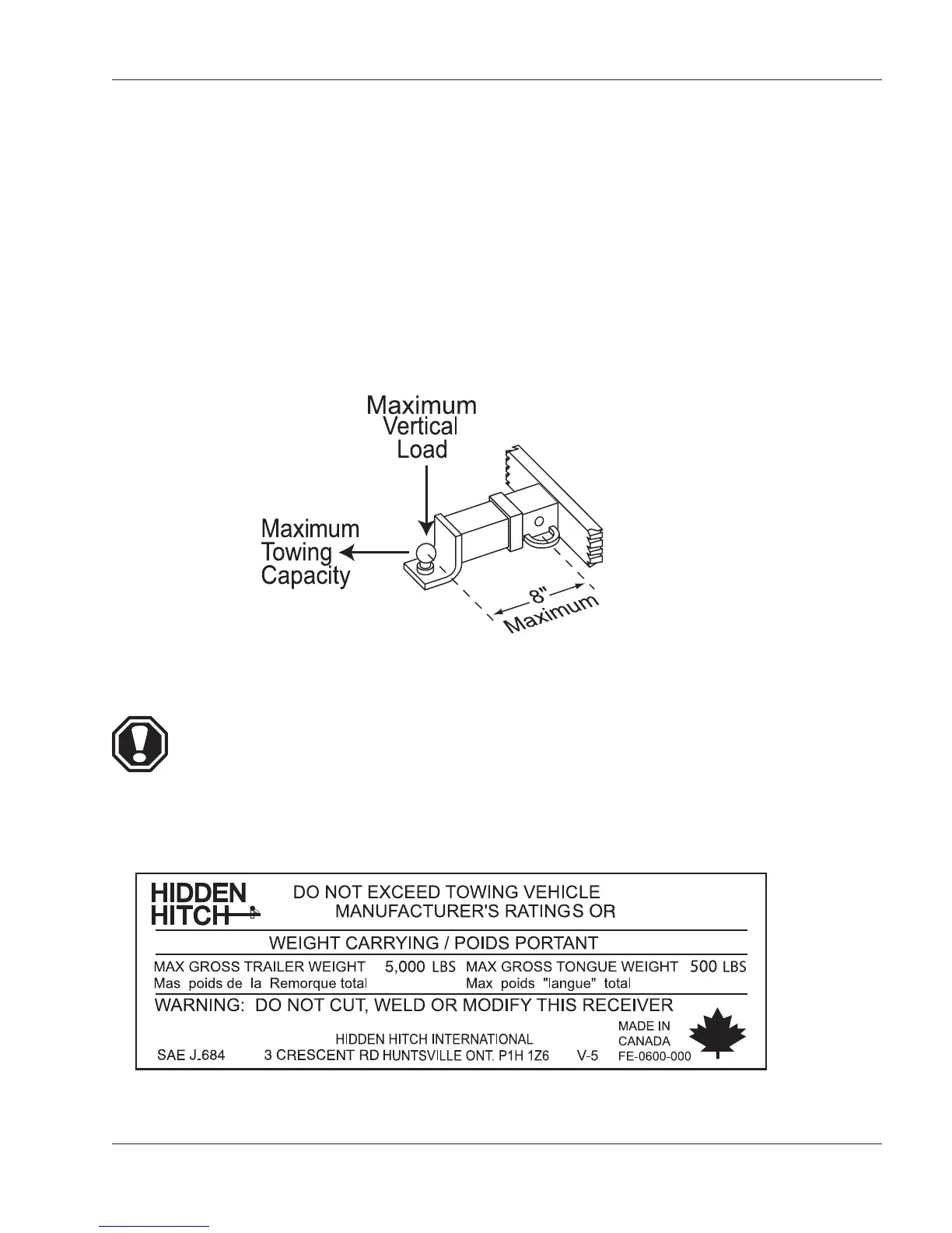 vehicle. Safety and durability of the hitch receiver requires that the receiver