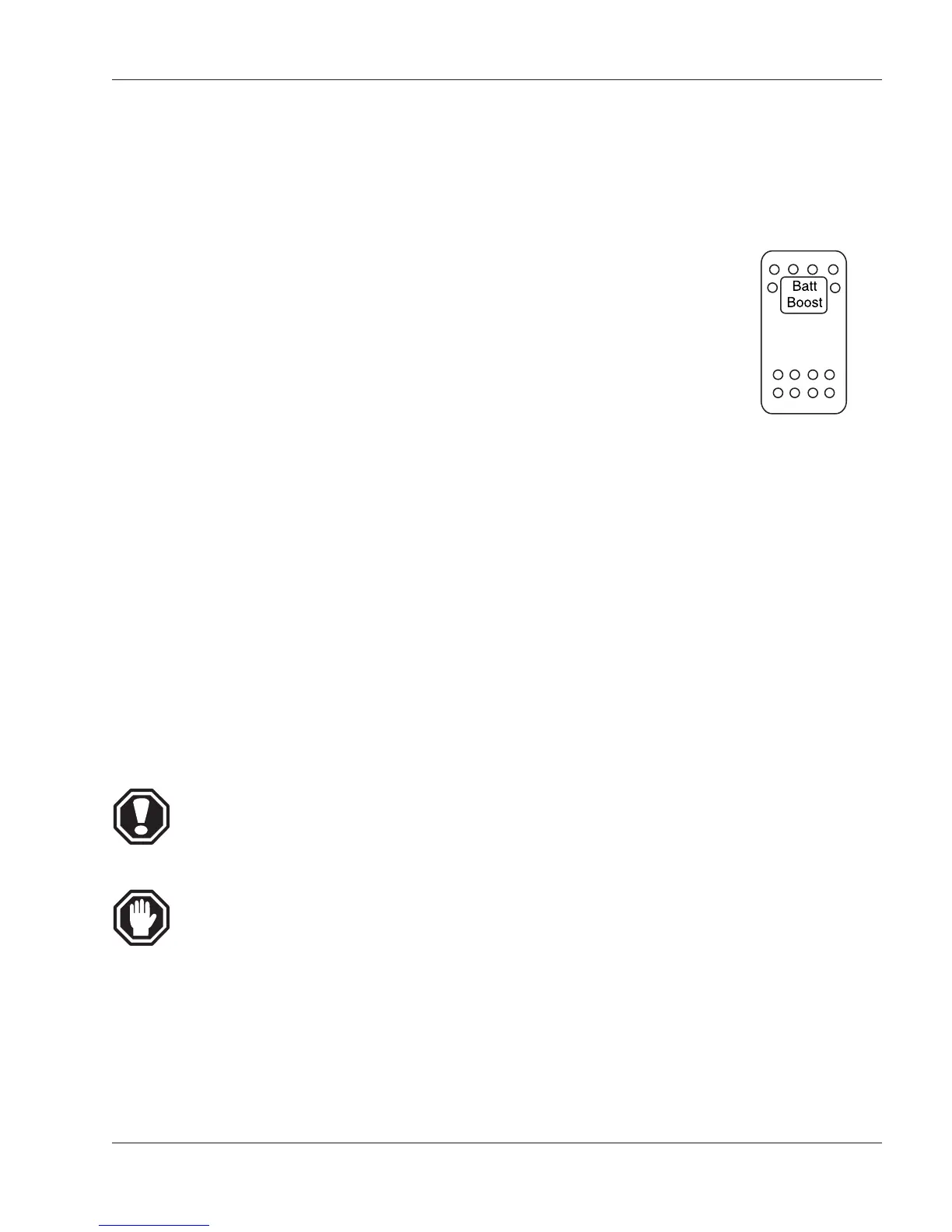 • Next, start the generator. This may require using the Battery Boost switch