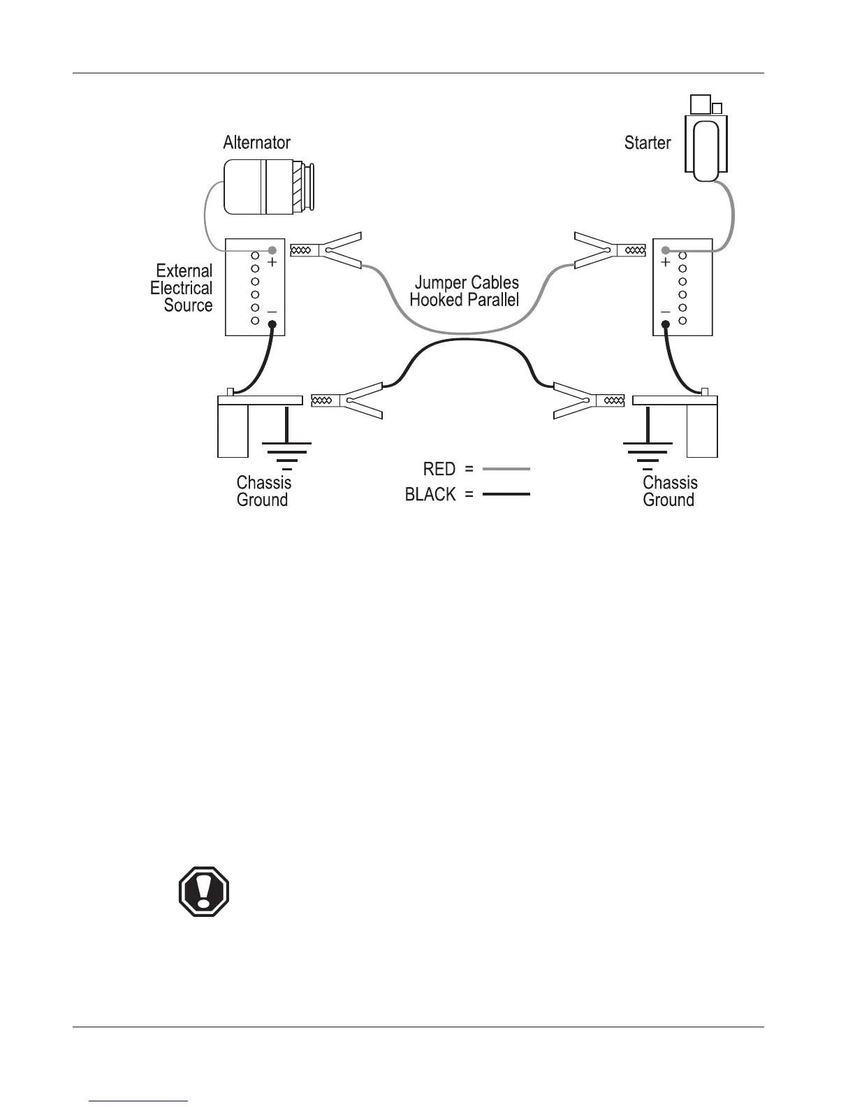 skin, eyes and clothing. Do not connect the end of the second cable to