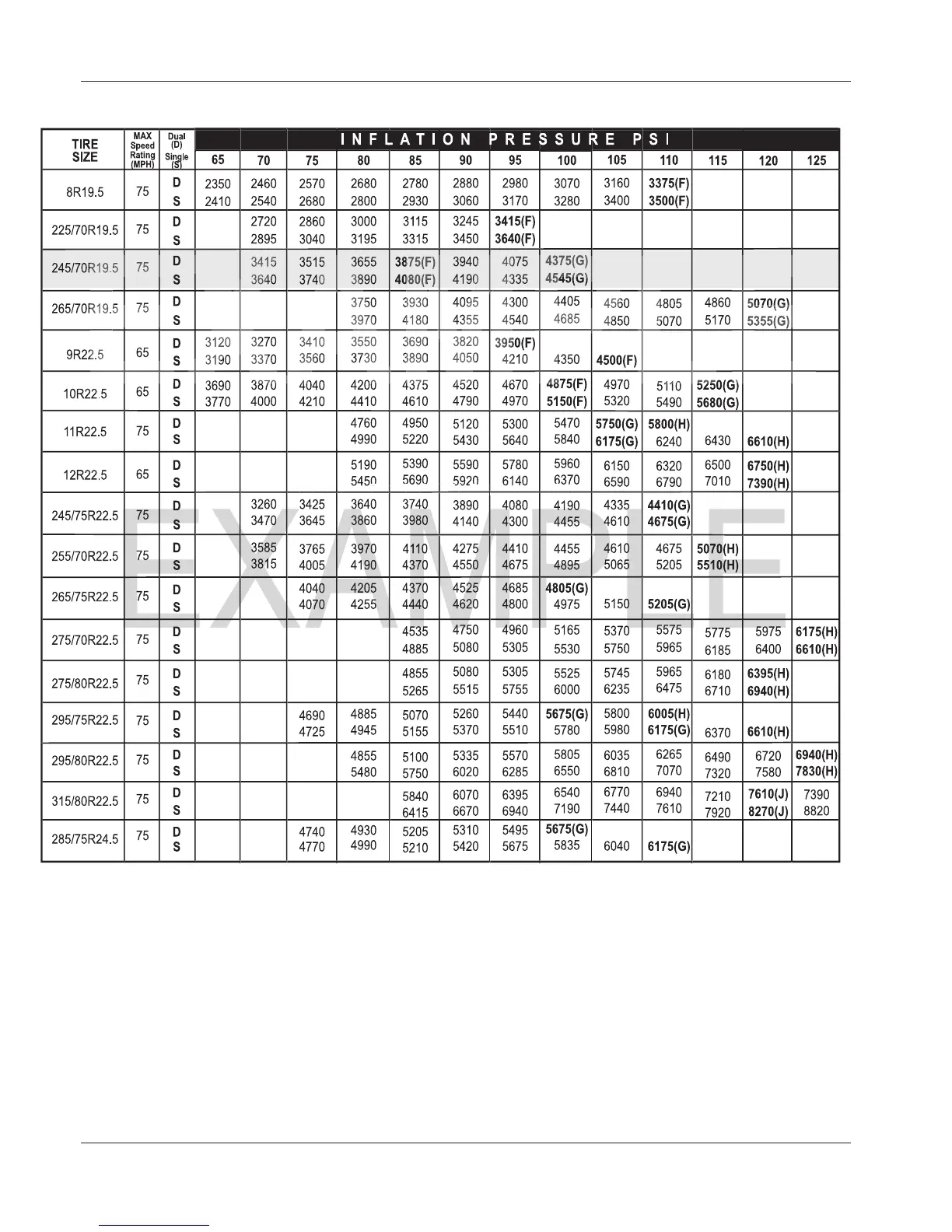 Example Tire Chart