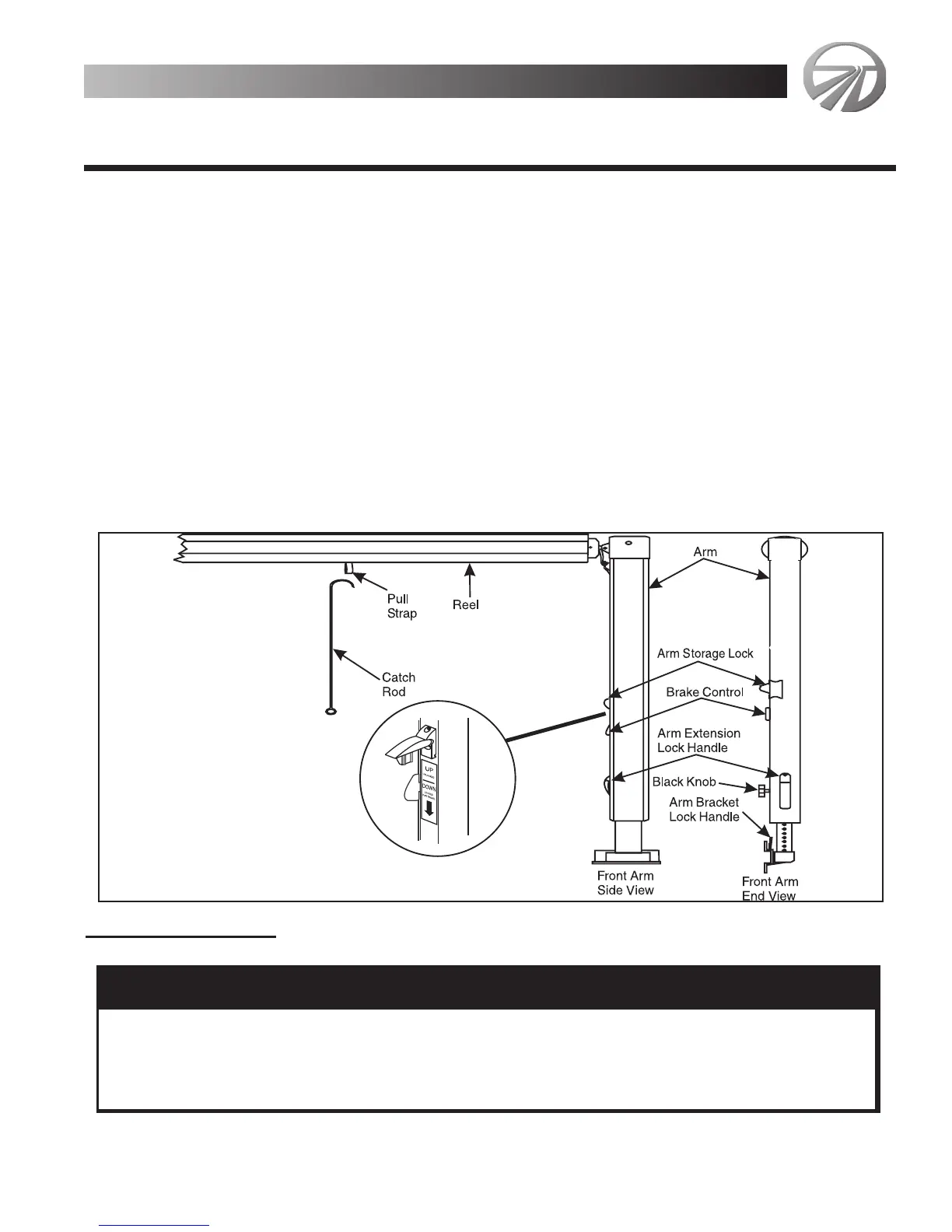 • Raise arm extension lock handles, located on bottom of front and rear arms, all