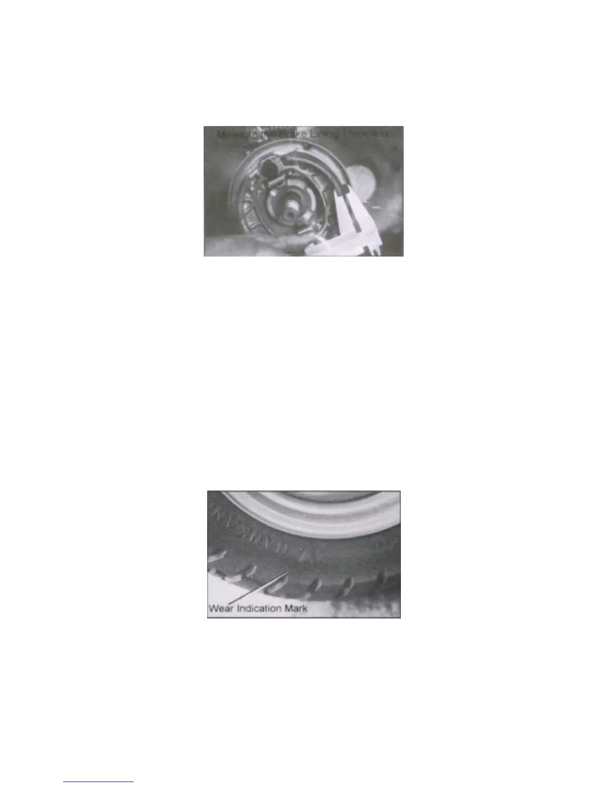 (two ends and centre). If badly worn, replace with new one (brake shoe and brake shoe