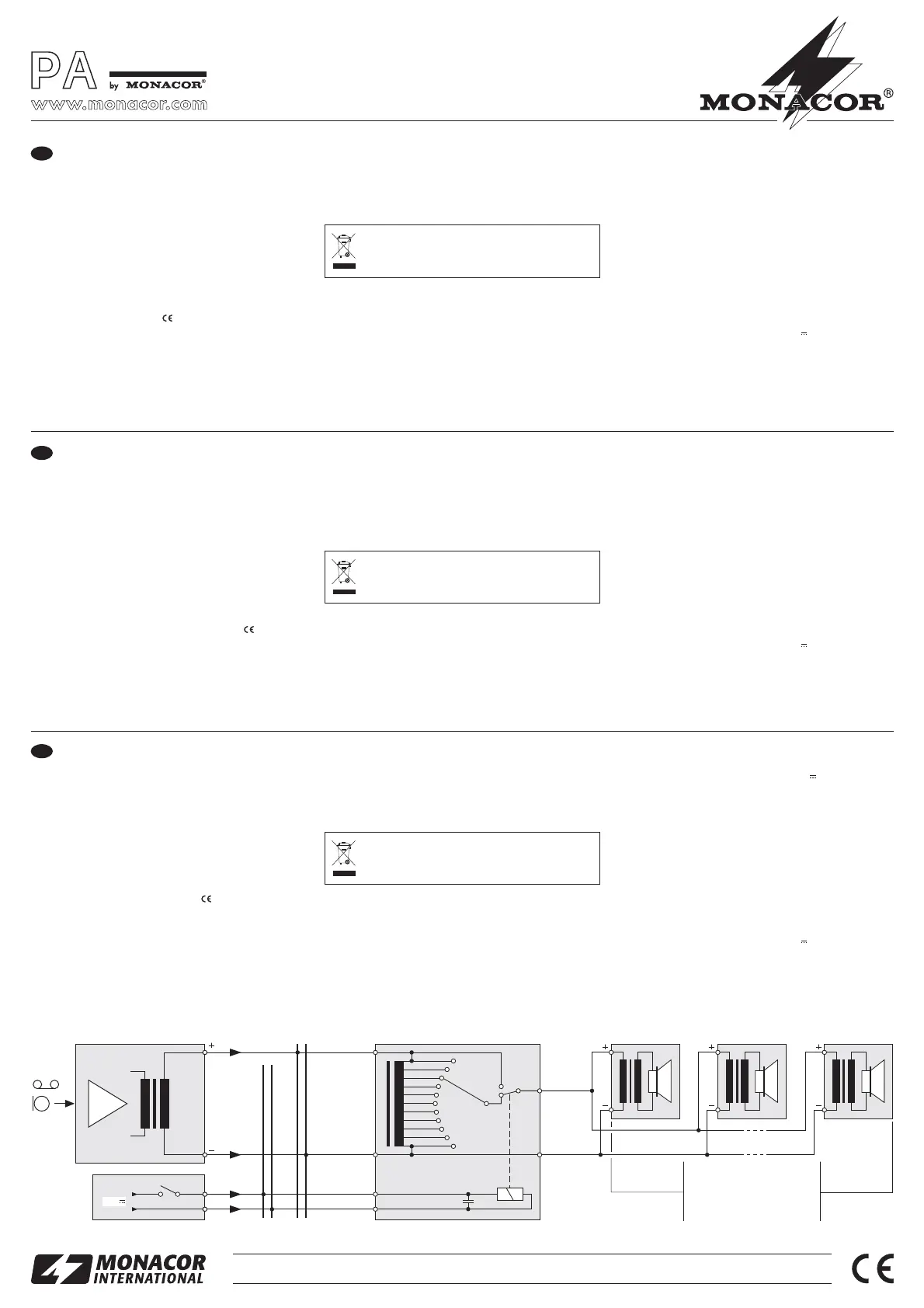 impianti PA che lavorano con uscita audio 100 V. Non si deve