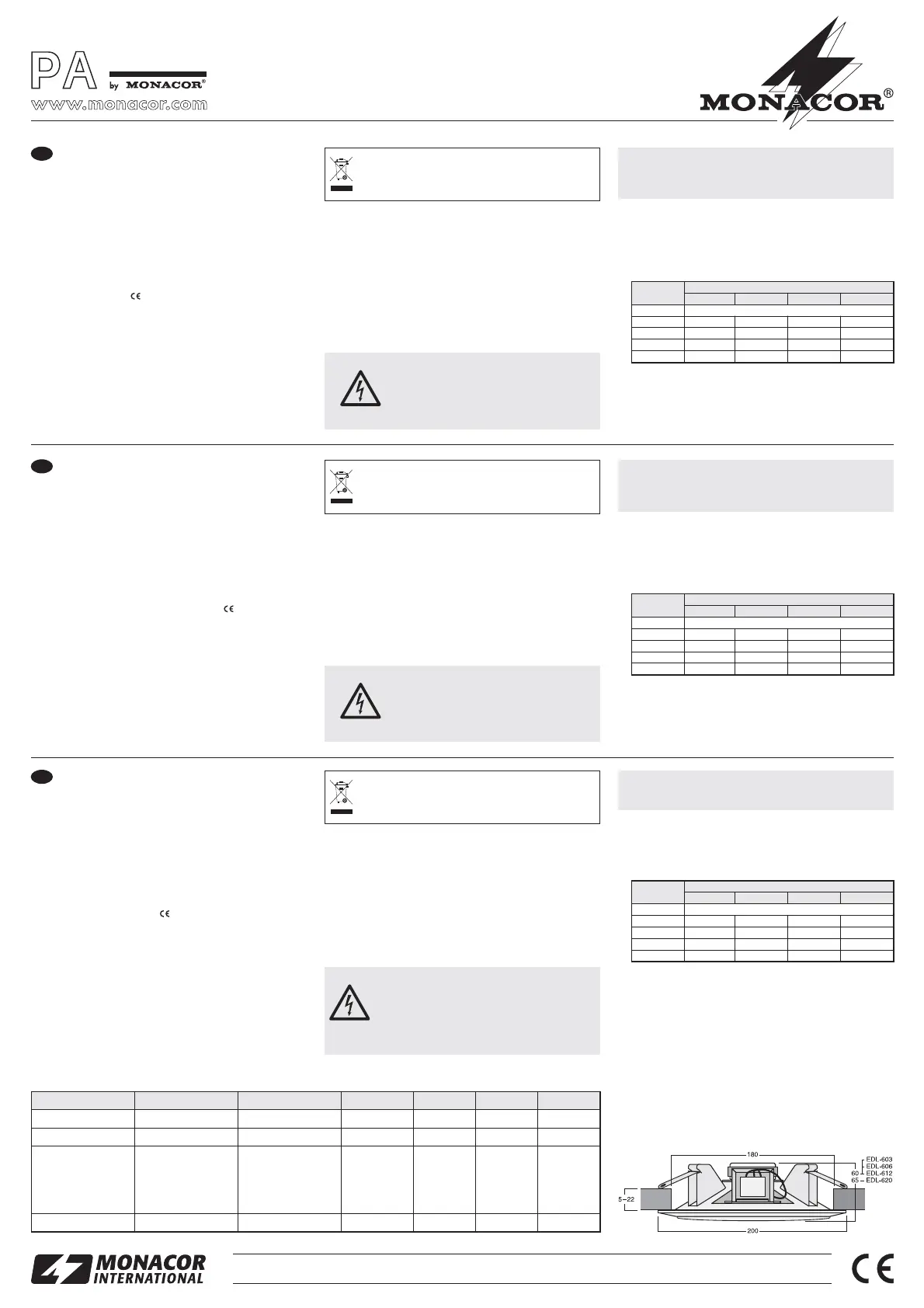 Potenza nominale (100 V) Potencia nominal (100 V) Moc (100 V) 3 / 1,5 / 1/ 0,75 WRMS 6/3/1,5 WRMS 12/6/3WRMS 20/10/5 WRMS
