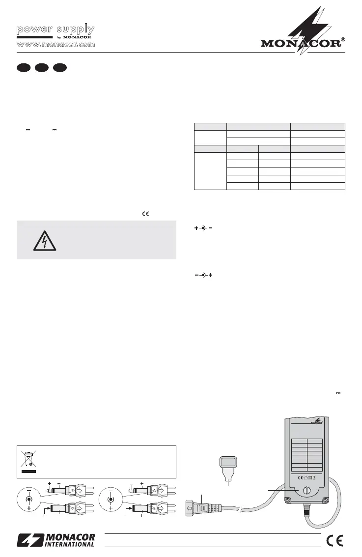 Tension de sortie : . . . . . . . . . . . . . 5 / 6 / 7,5 / 9 / 12 / 13,5 / 15 V