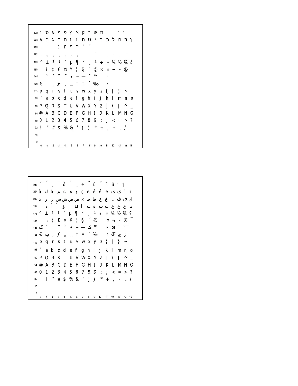 Monarch 9906 - Code Page 1255 (Hebrew; Code Page 1256 (Arabic